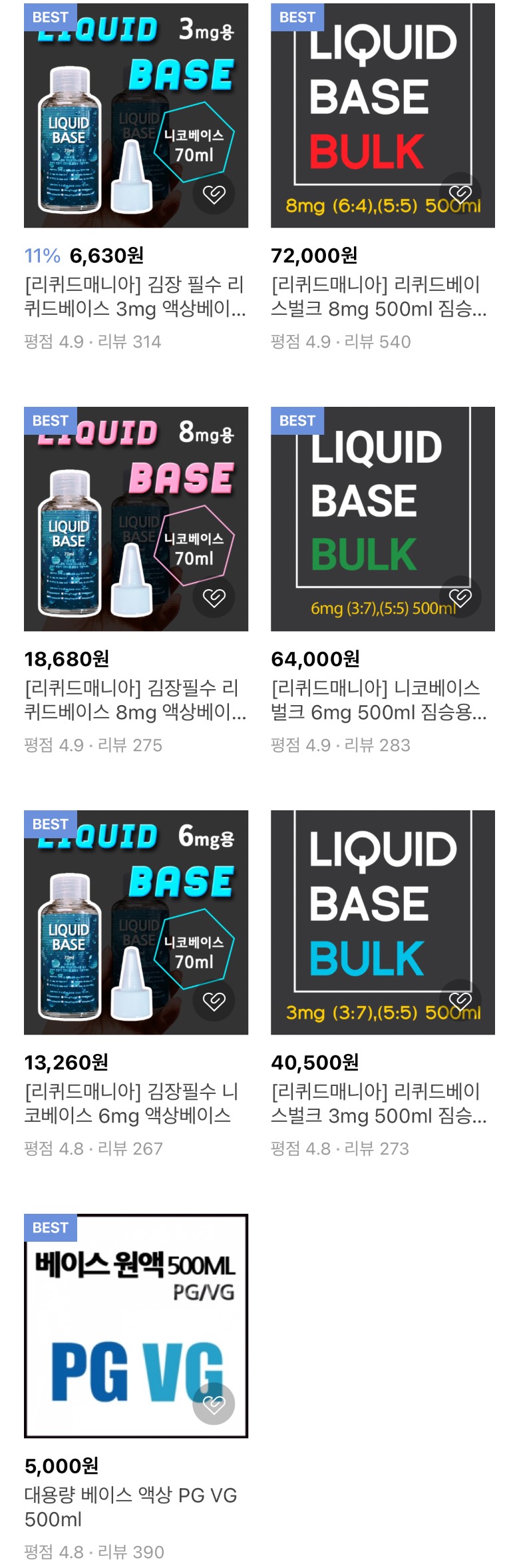 직접 원재료로 액상을 제조하는 분들도 있지만 액상 제조가 번거로워 베이스 작업이 된 것을 구매하여 단순 김장을 하기도 합니다.